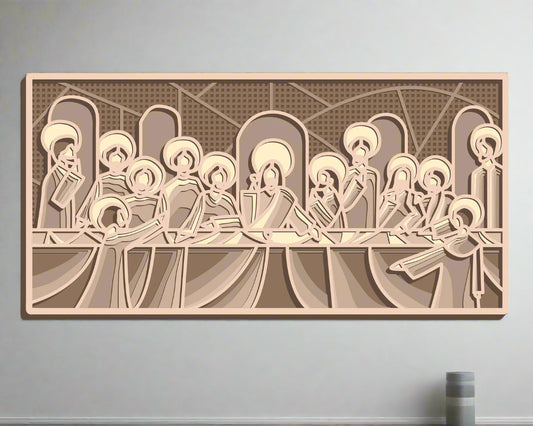 Tablou în straturi, lineart minimalist, „Cina cea de taină”, placaj din lemn