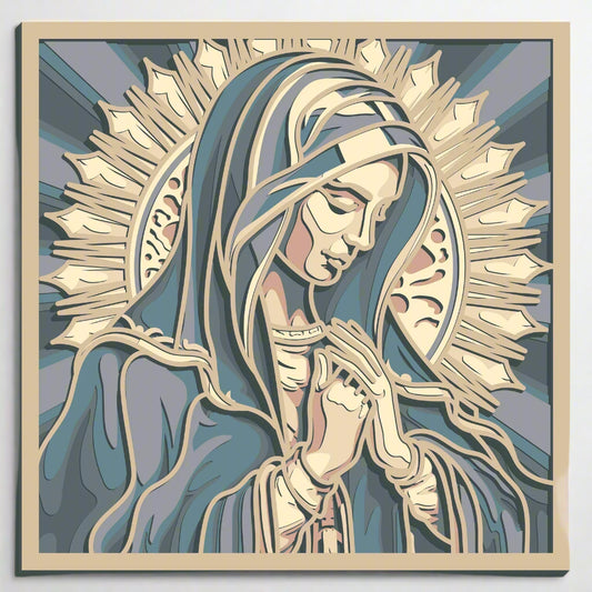 Tablou în straturi, lineart minimalist, „Fecioara Maria”, placaj din lemn