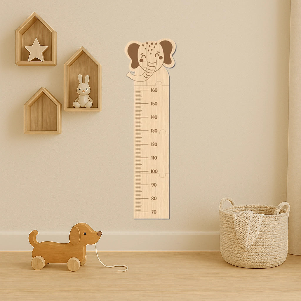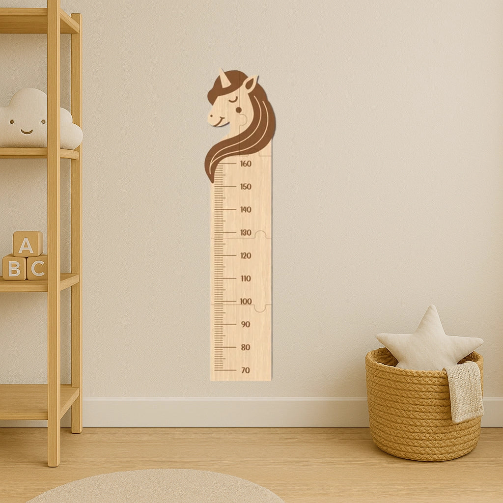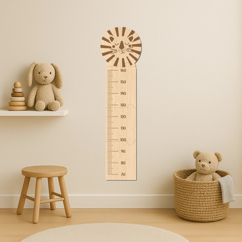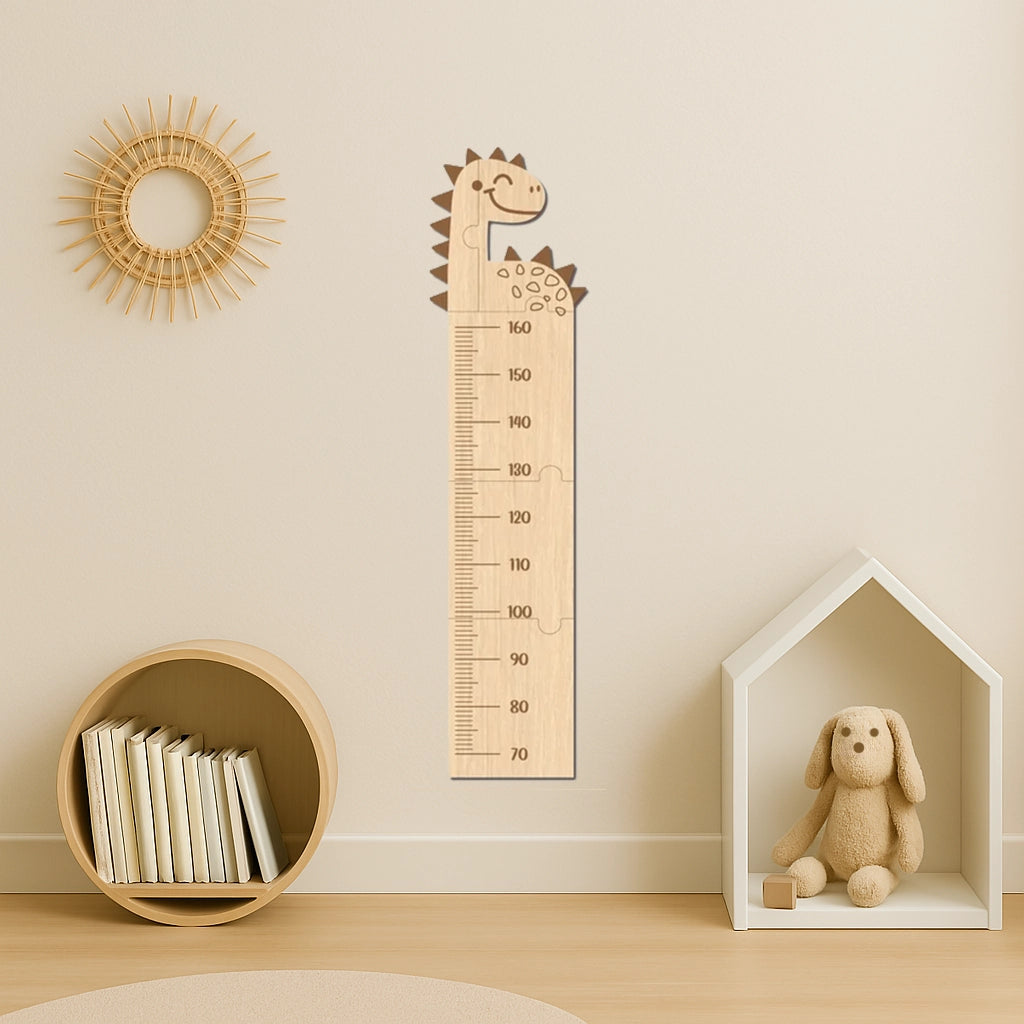 Metru din lemn pentru măsurare copii. Este confecționat din placaj de lemn cu grosimea de 6 mm, foarte solid și rezistent. Înălțime de la 70 la 160 cm. Dinozaur, unicorn, girafă, elefant, leu, iepuraș - ce variantă alegi?